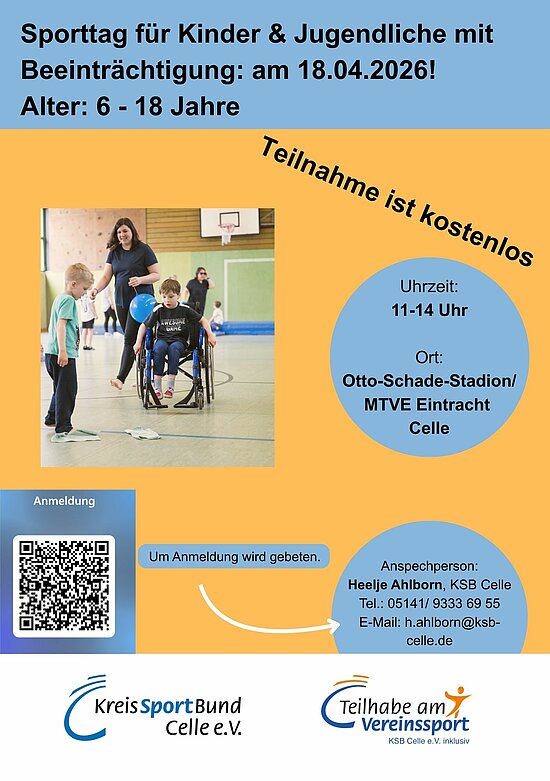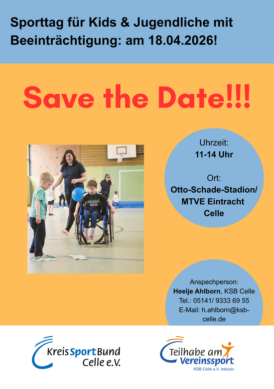 Kontakt: Projektleitung "Inklusion im und durch Sport", Email: h.ahlborn@ksb-celle.de, Tel.: 05141/ 933 69 55